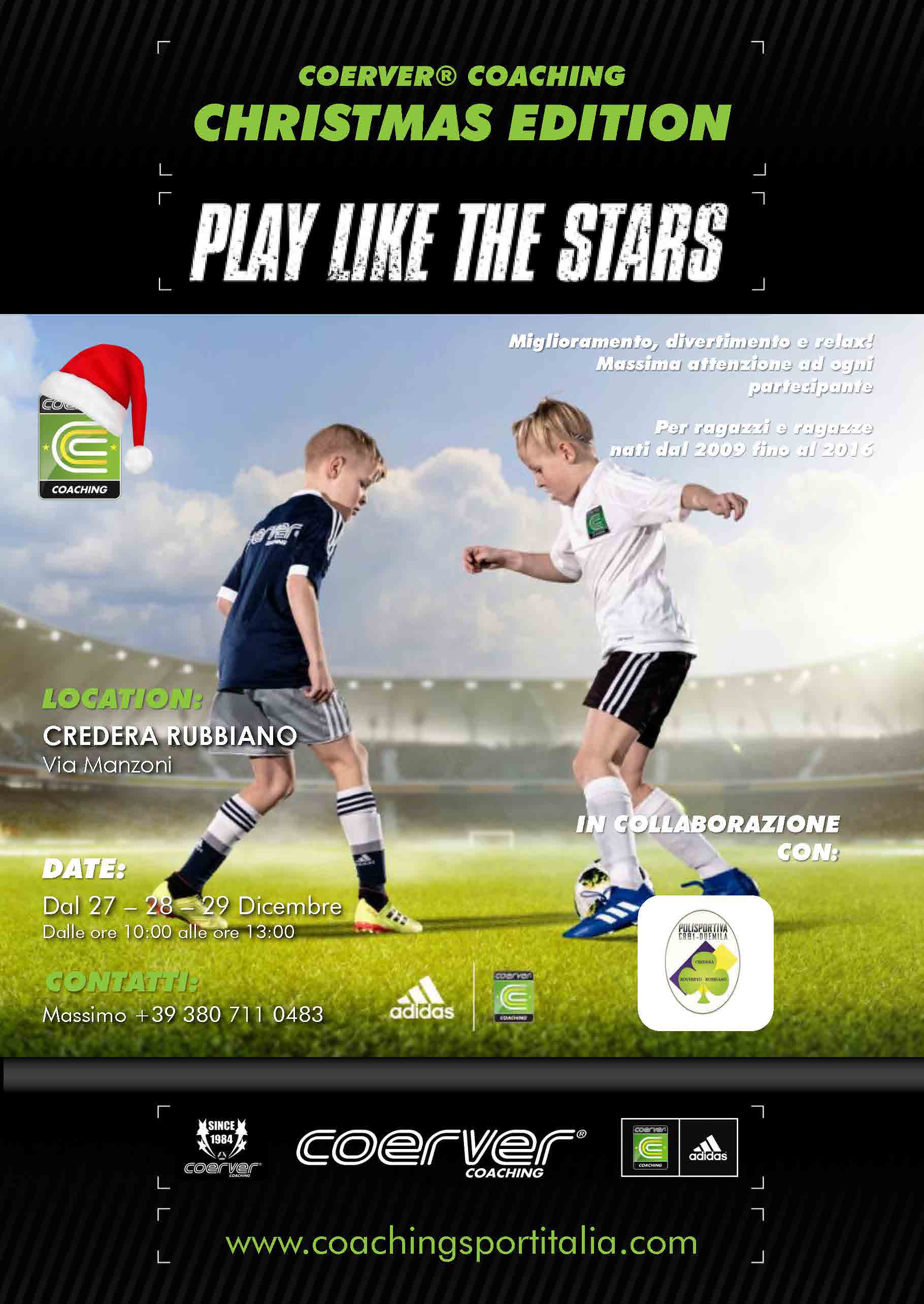 L'Associazione Coerver Coaching Italia organizza, in collaborazione con la Polisportiva CR81 DUEMILA, un camp dedicato ai ragazzi nati dal 2009 fino al 2016. L'Ediziona natalizia del camp si svolgerà il 27, 28 e 19 Dicembre, dalle ore 10.00 alle ore 13.00 presso il Centro Sportivo di Credera Rubbiano.