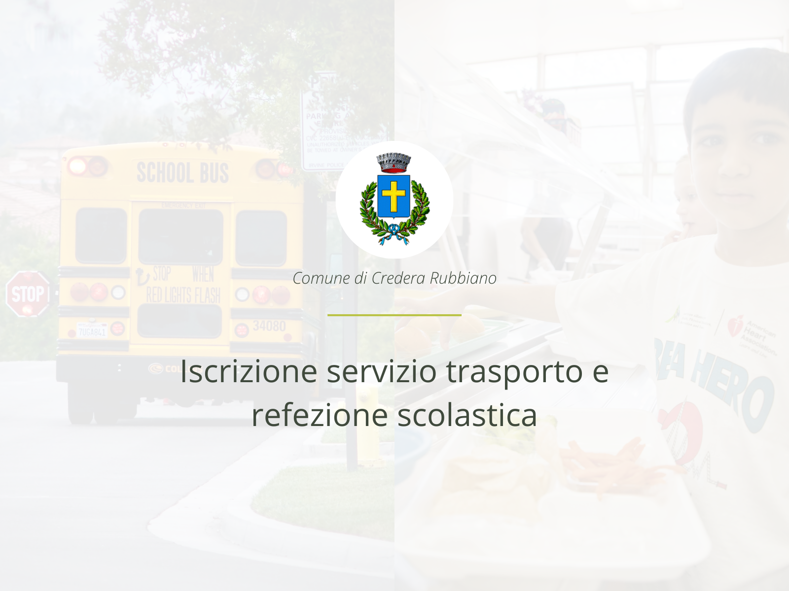 Si ricorda ai genitori che intendono usufruire del servizio di trasporto e/o refezione per il prossimo anno scolastico 2023-2024 che, dal 24 maggio 2023 al 30 giugno 2023, sono aperte le iscrizioni sul portale E-CIVIS di Credera Rubbiano.