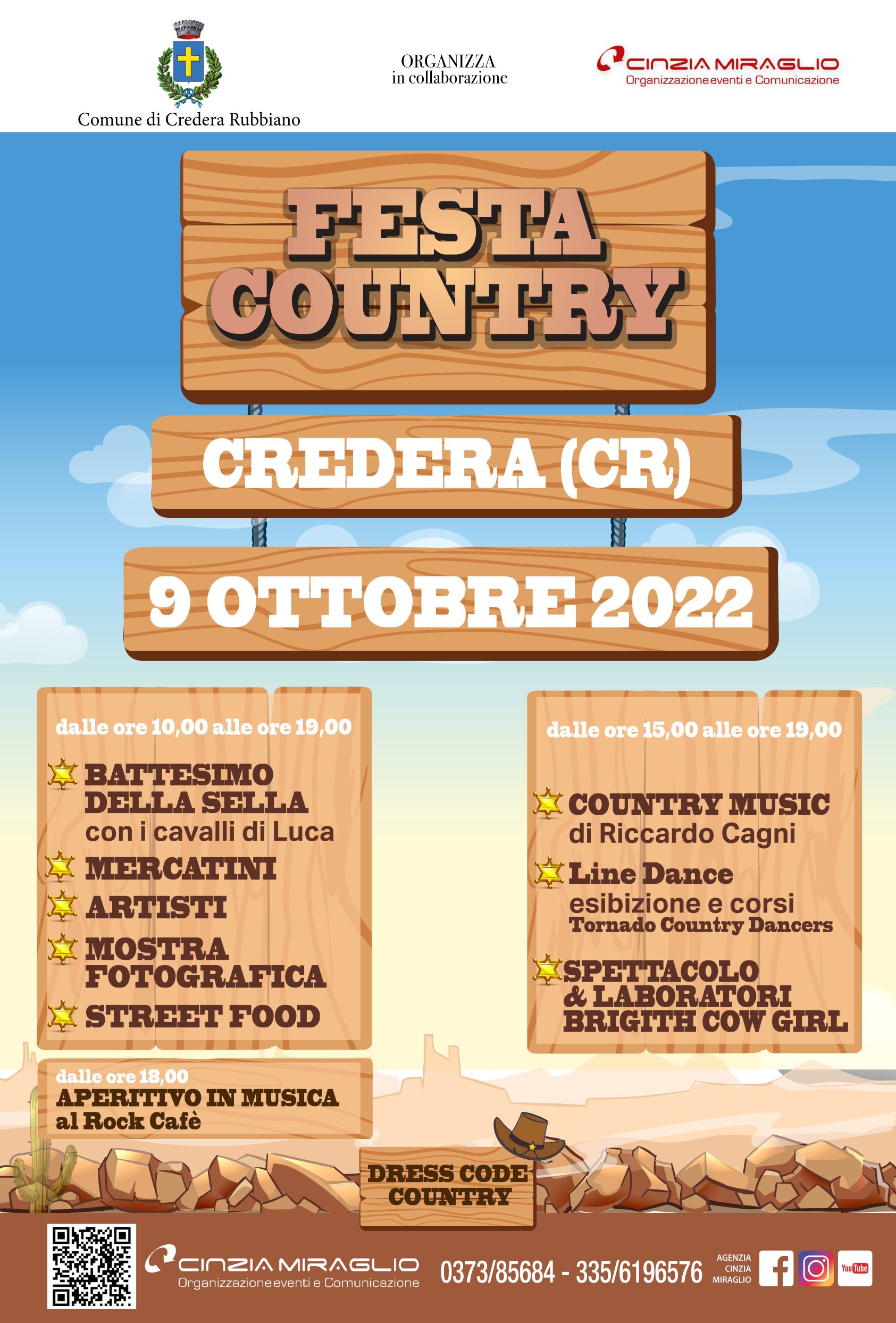 Torna dopo 3 anni la tradizionale "Sagra di Credera", che festeggia il San Donnino. L'Amministrazione Comunale, in collaborazione con l'Agenzia Cinzia Miraglio di Crema, organizza in data 9 Ottobre dalle ore 10.00 alle ore 19.00, una grande e allegra Festa Country nelle vie centrali del paese.